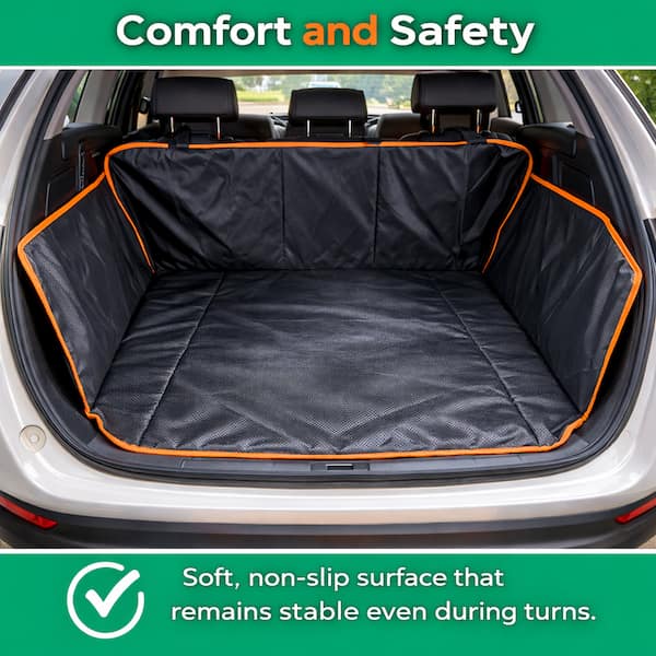 Equipped with non-slip backing and adjustable straps, this protector stays in place even during bumpy rides. Your car and pets are safe at all times.