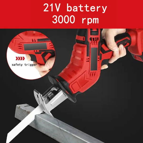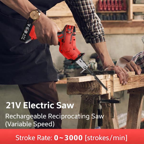 Electric reciprocating saw, 3000 rpm, 21V cordless reciprocating saw with 2 batteries and 4 blades