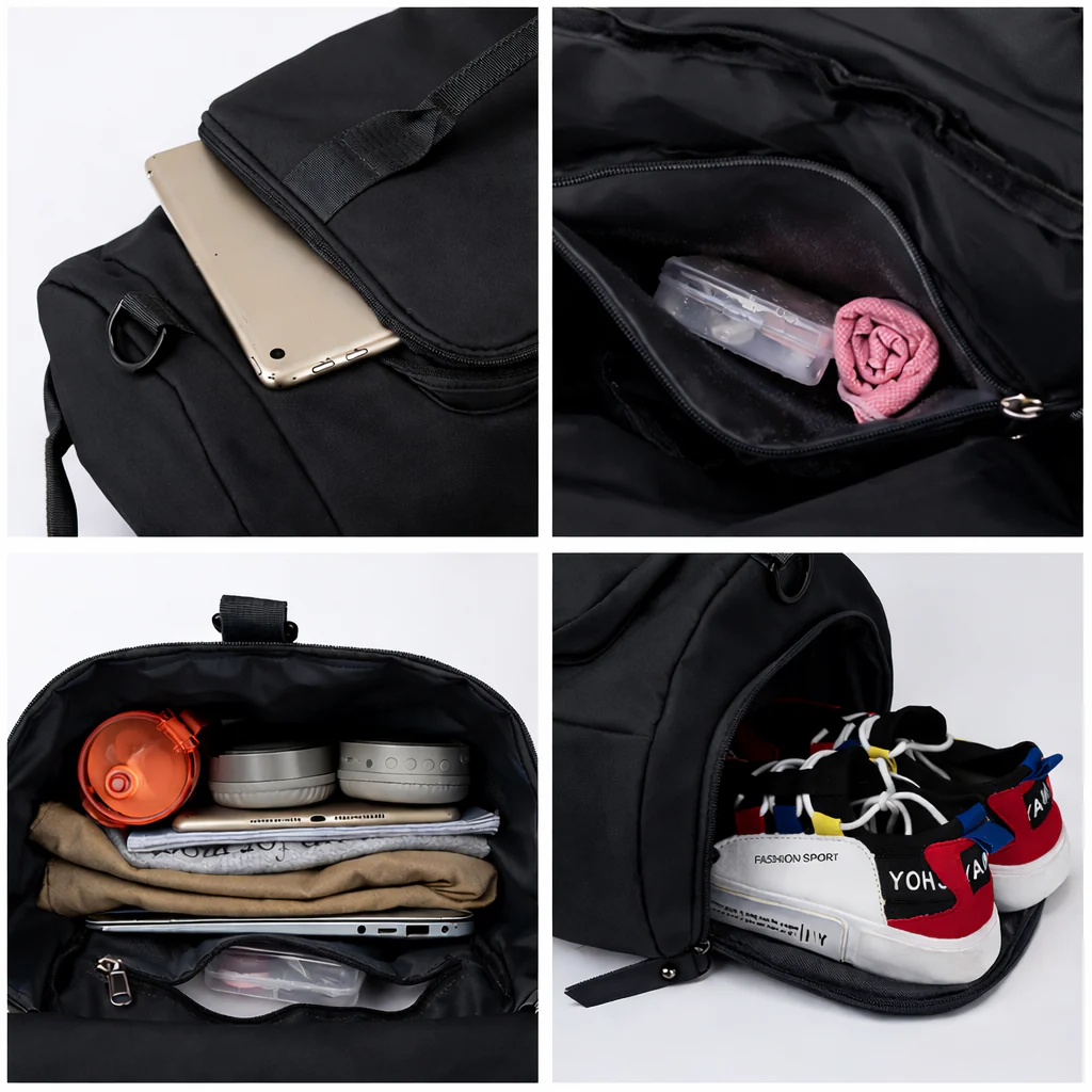 A dedicated separate shoe compartment keeps footwear isolated from clean clothes. No dirt, no odors — just fresh and organized packing after workouts or travel.