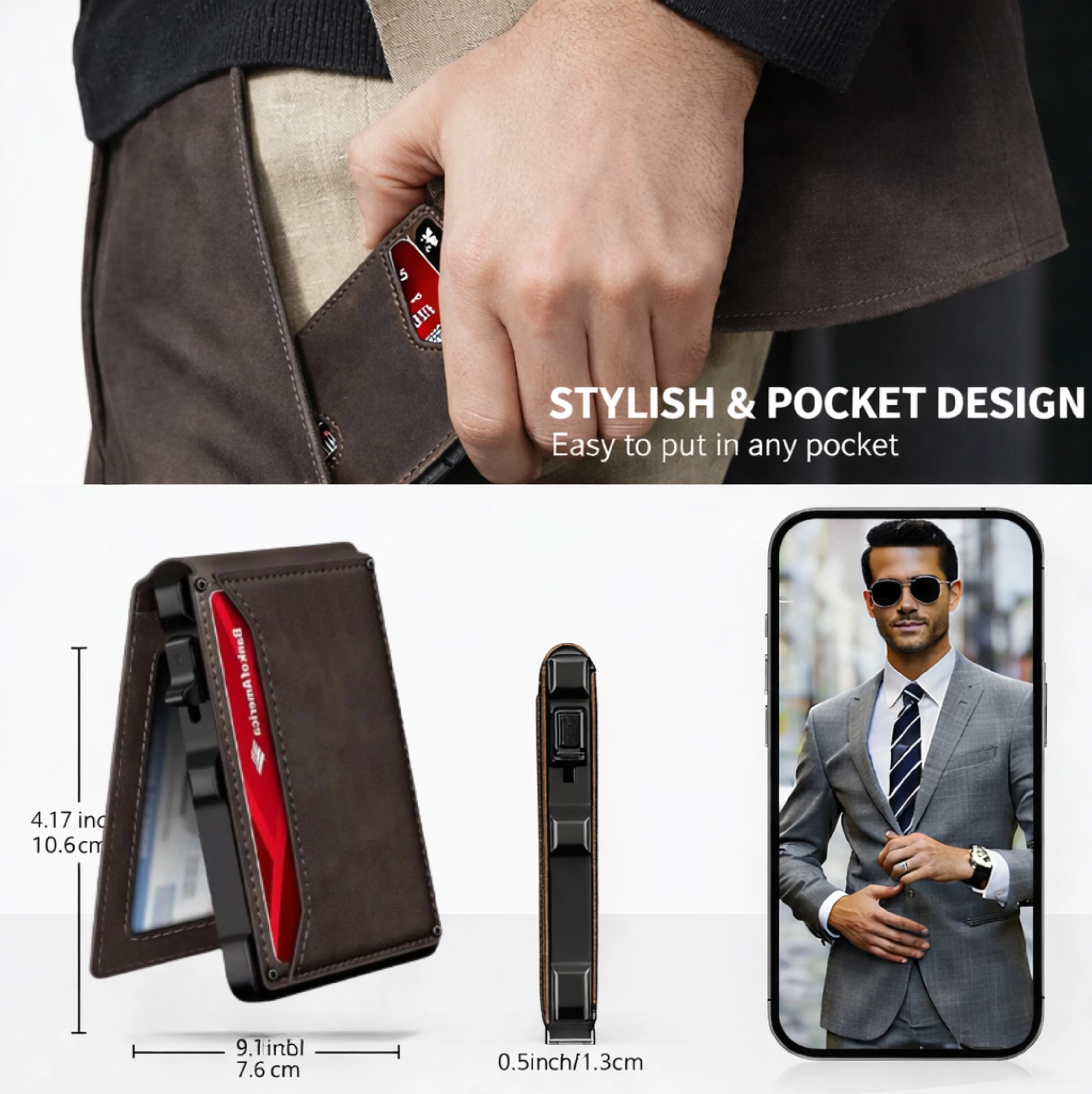 Upgrade your everyday carry. Tired of bulky old wallets? This smart pop-up wallet is designed for modern life—ultra-slim, stylish, and made to fit perfectly in your pocket without the bulk.